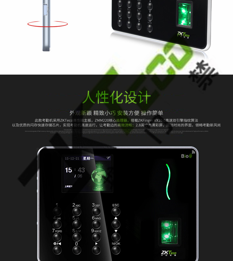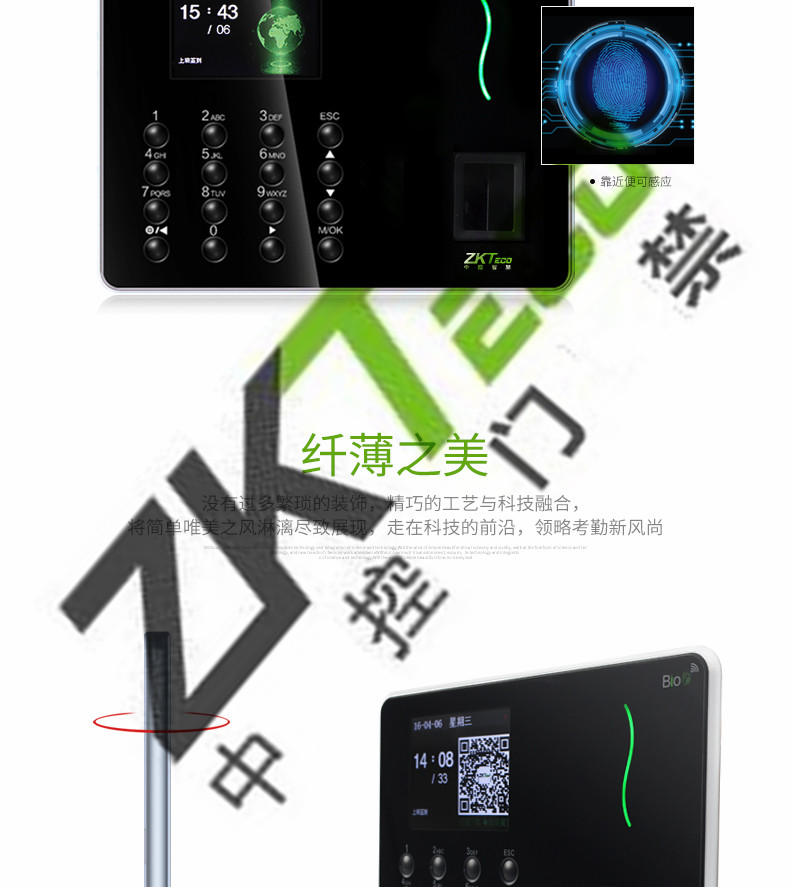 中控w6考勤機(jī) 超薄彩屏打卡機(jī)